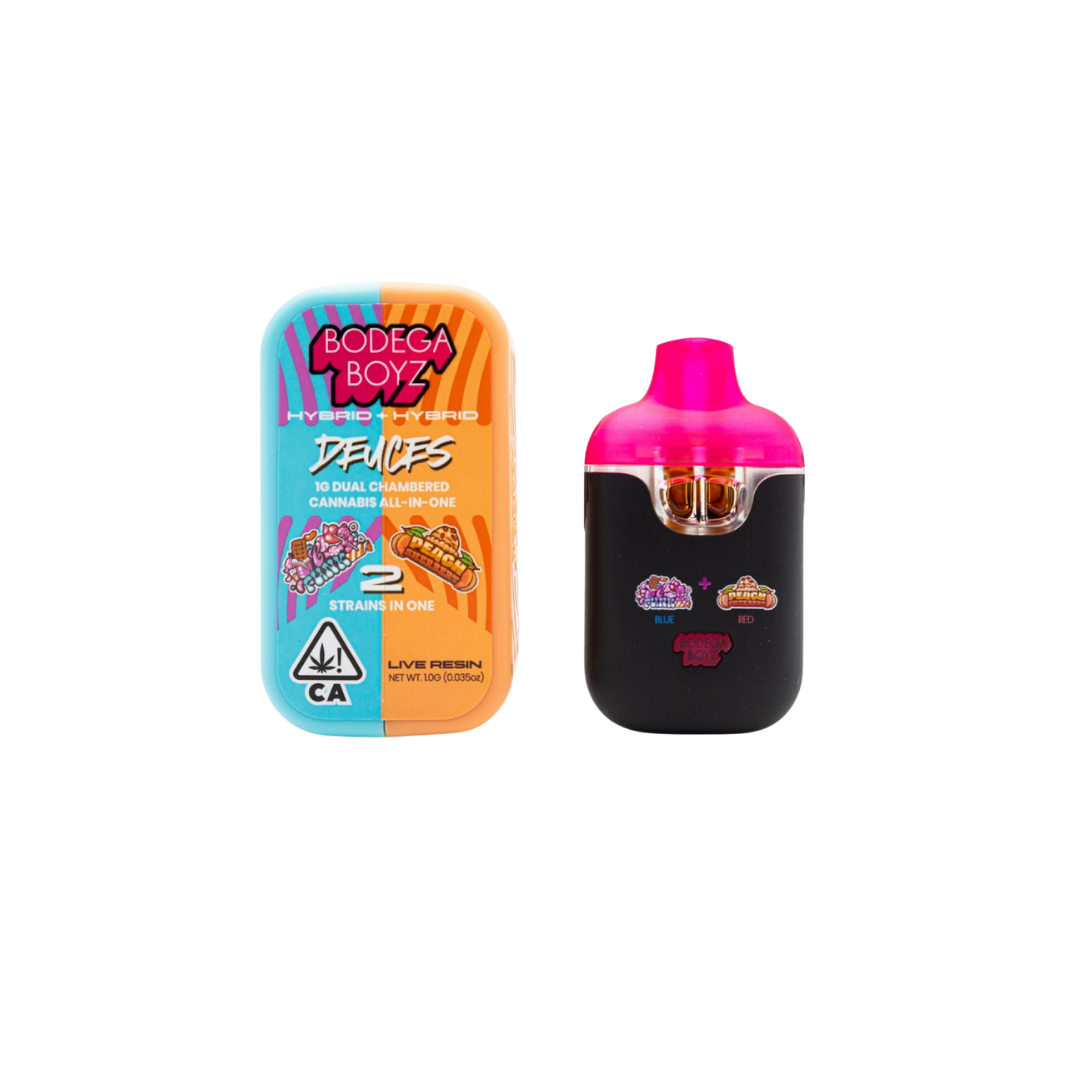 El Bodega Boyz 2G es un vape desechable de 2 gramos con tecnología de tanque de doble cámara (“dual-chambered disposable”), que combina dos sabores o cepas en un solo dispositivo. Ideal para quienes buscan versatilidad, sabor intenso y una experiencia premium de live resin.